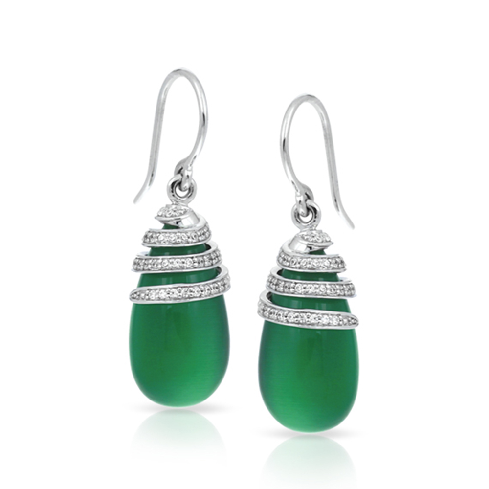Eden Collection In Sterling Silver /Cat'S_Eye Green/Cz.White Earring