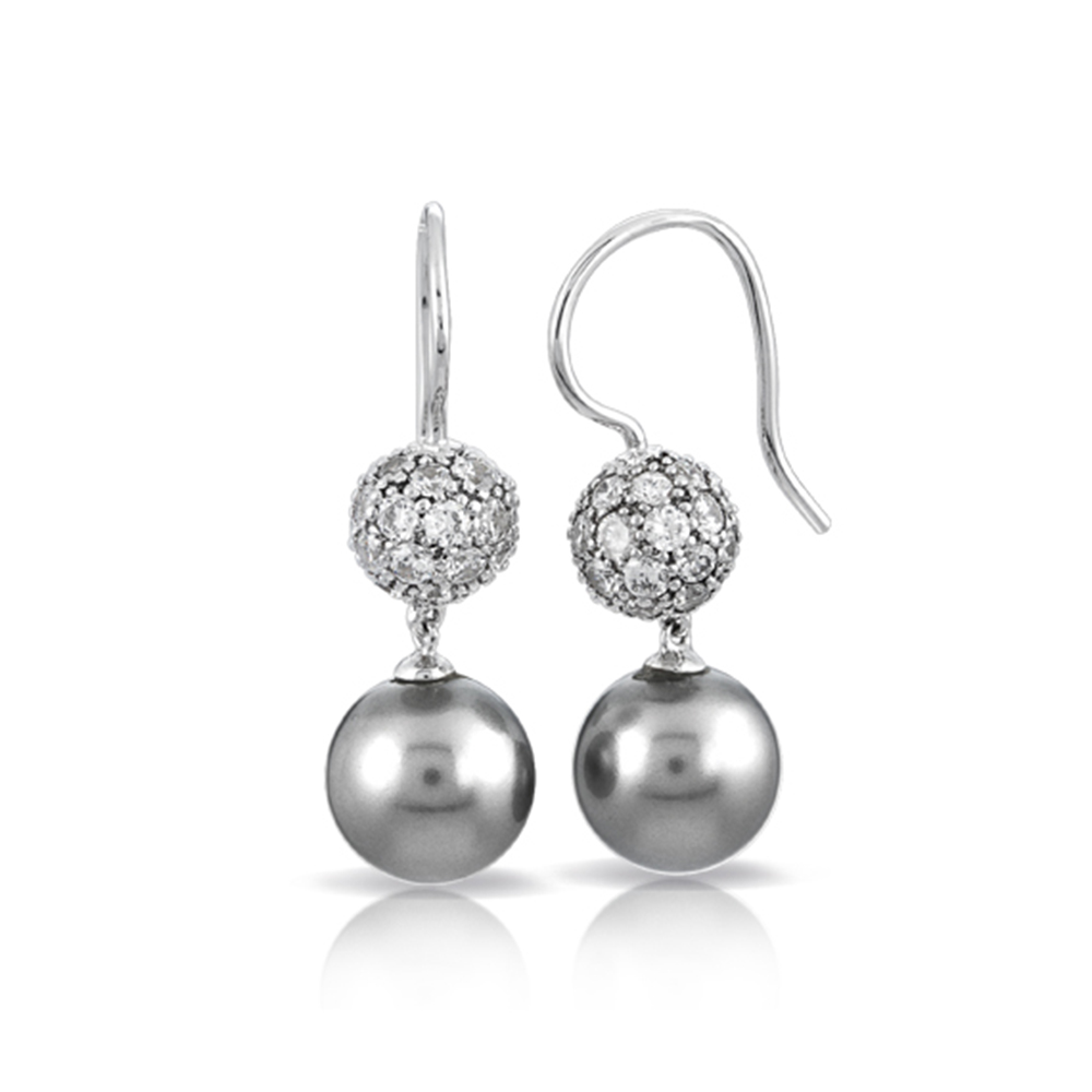 Luxury Grey Earrings by Belle Etoile . Grey seashell pearls with white stones set into rhodium-plated nickel allergy-free 925 sterling silver.