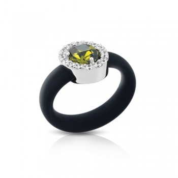 Diana Black/Olive Ring by Belle Etoile . Hand-strung black Italian rubber with olive and white stones set into rhodium-plated nickel allergy-free 925 sterling silver.