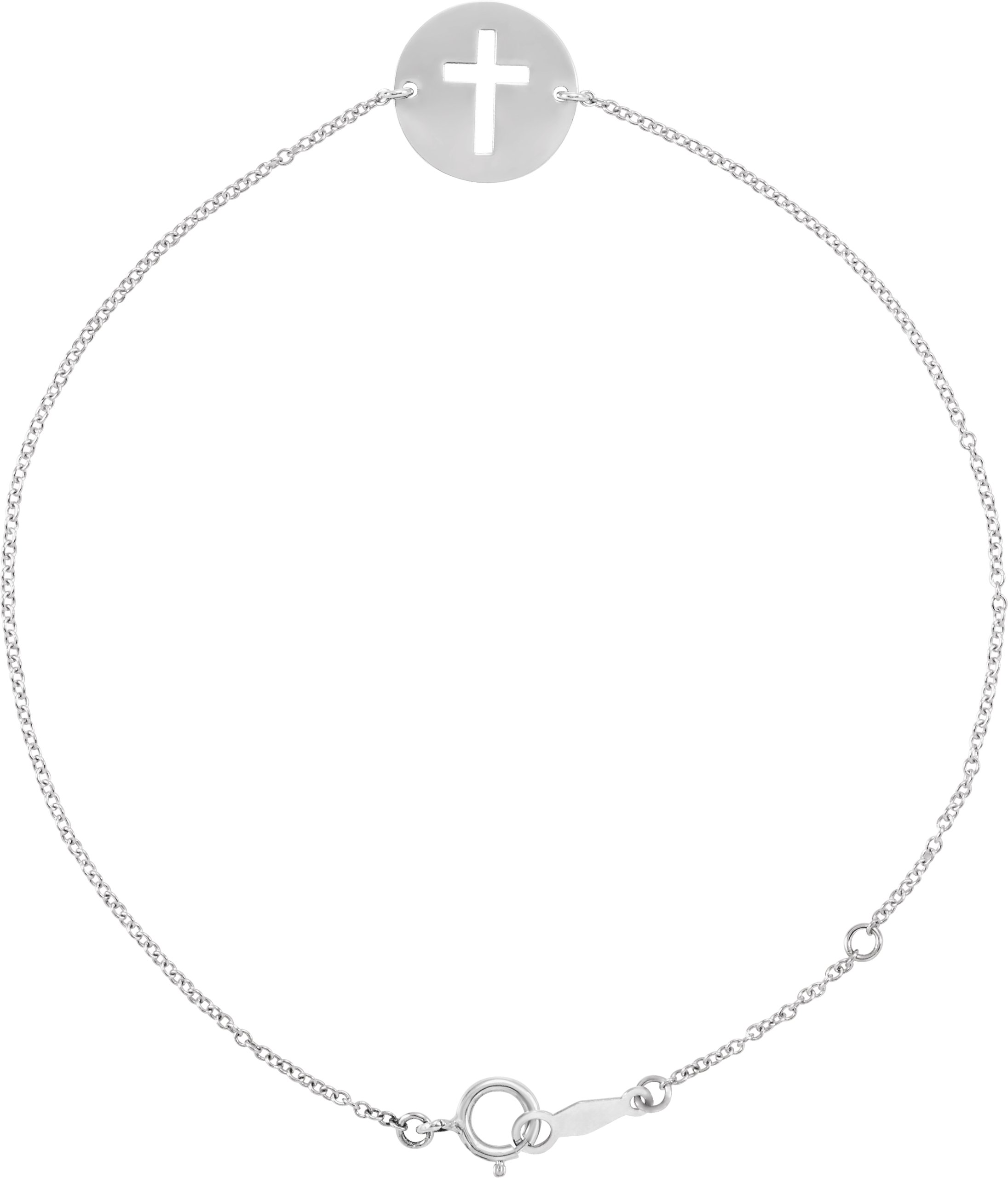 Brc784 / Bracelet / 14K White / 7-8 In / Polished / Pierced Cross Disc Bracelet