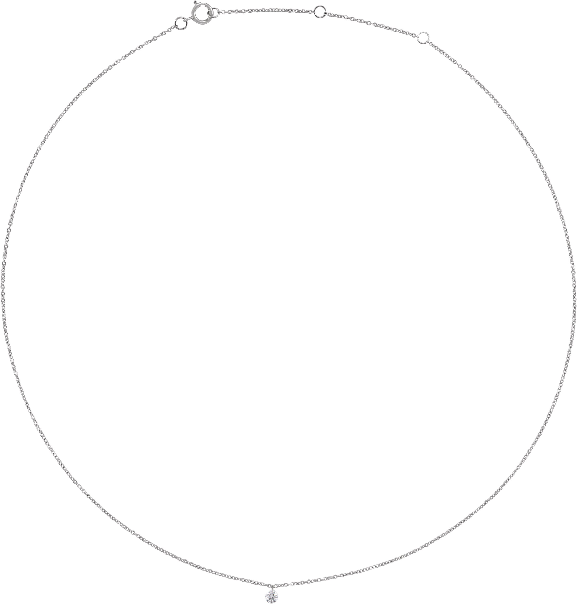 14K White 1/6 CT Drilled Natural Diamond Solitaire 16-18" Necklace