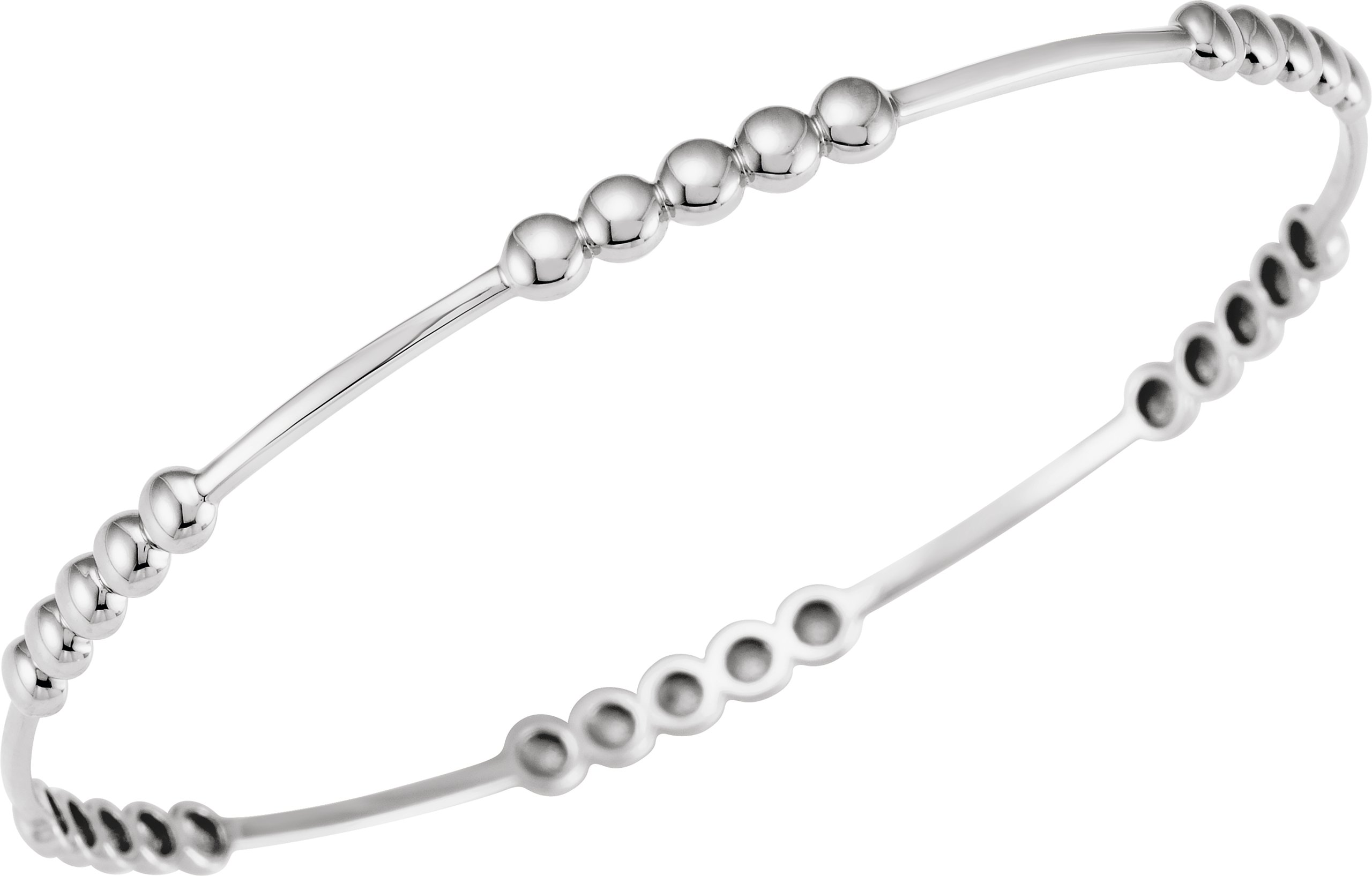 14K White 3.66 mm Beaded Bangle 7" Bracelet