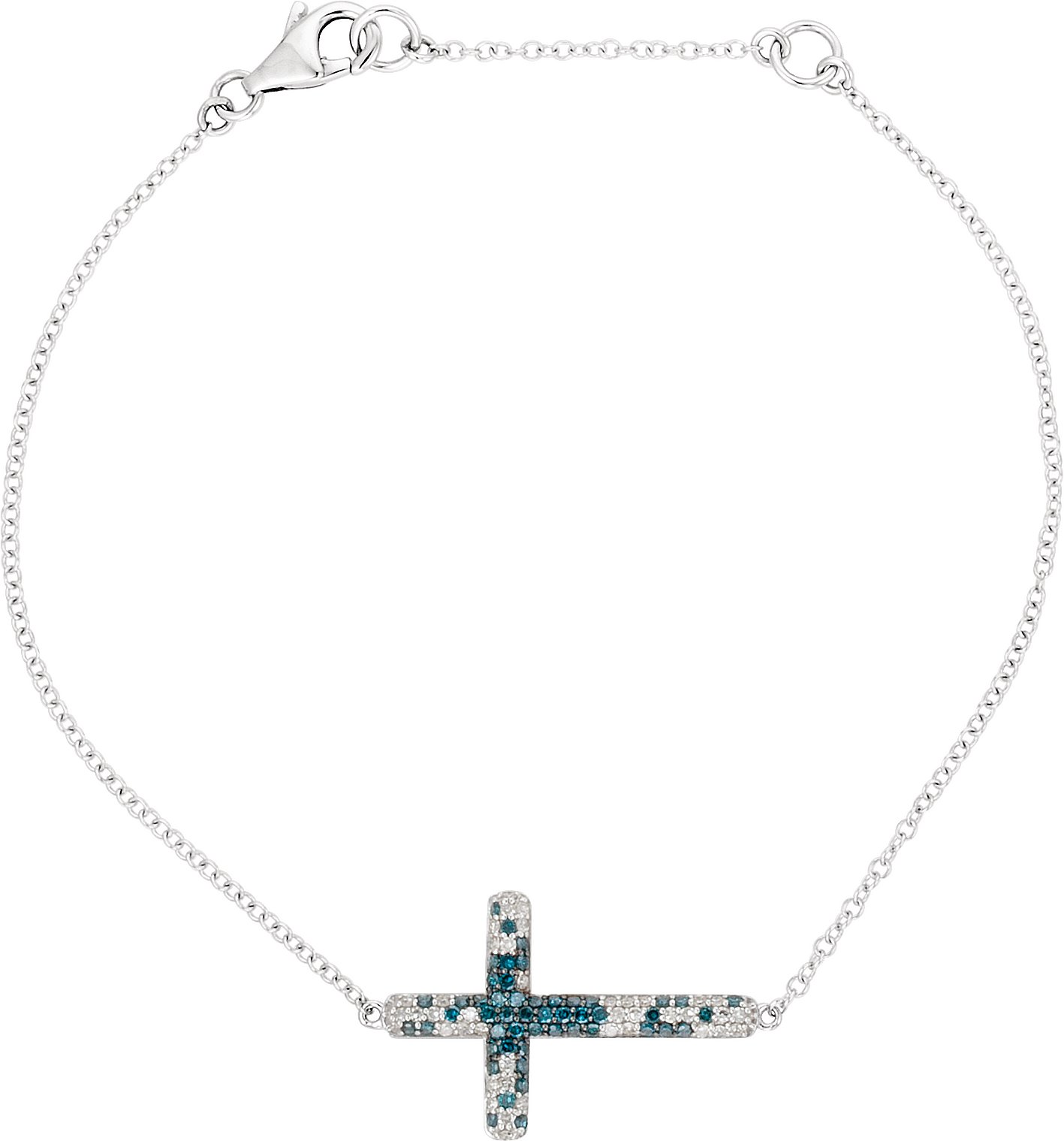 14K White 3/8 CTW Diamond Sideways Cross 8" Bracelet