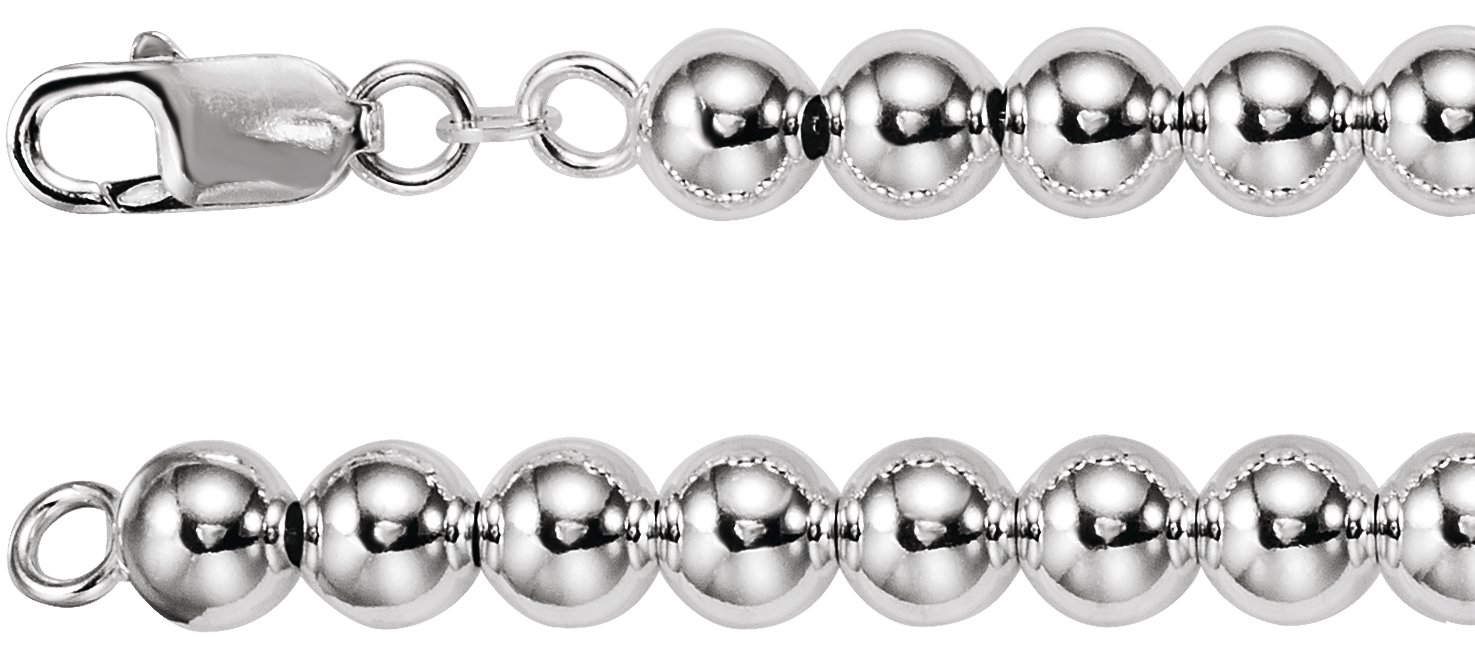 Ch290 / Sterling Silver / Bead / 8 Mm / 7 In / Lobster Clasp / Polished / Hollow Bead Chain