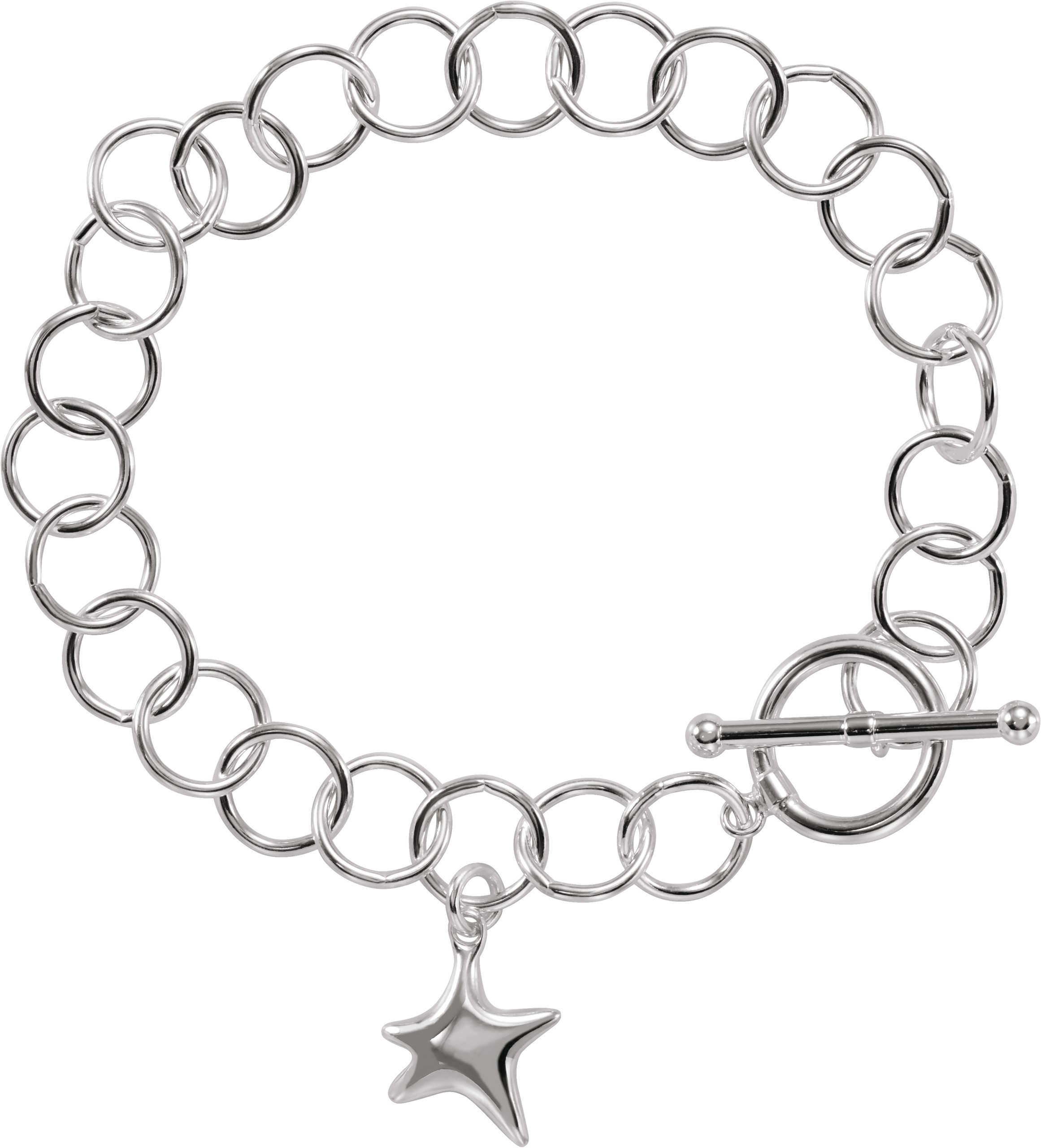 Sterling Silver 9.5 mm Star Charm 7 1/2" Bracelet
