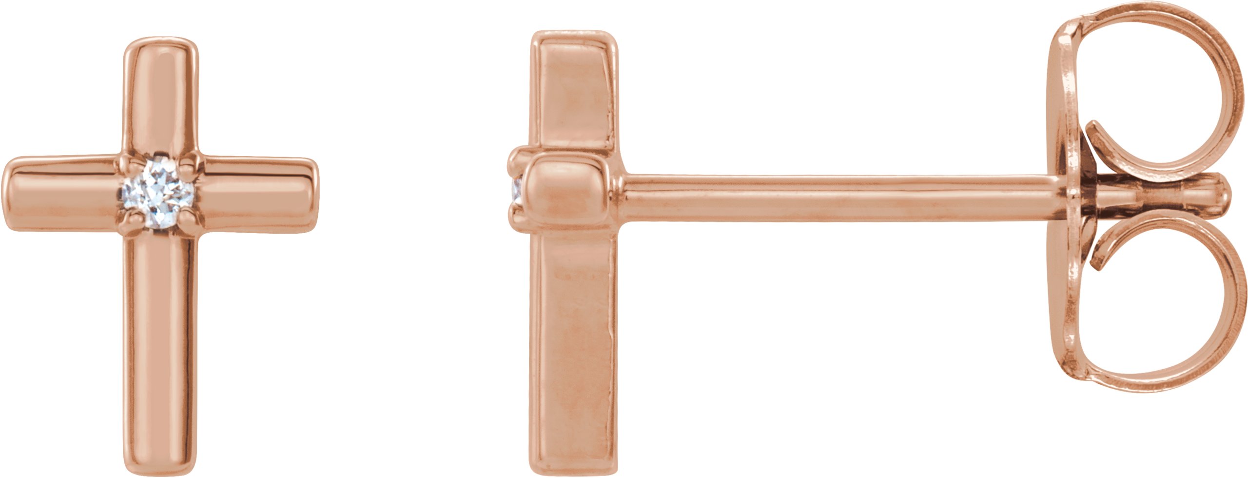 R17024 / 14K Rose / Set / Round / Natural Diamond / Pair / 1.1Mm :: 0.01 Ctw / I1, G-H / Friction / Friction Backs Included / 4-Prong / Polished / .01 Ctw Natural Diamond Cross Earrings