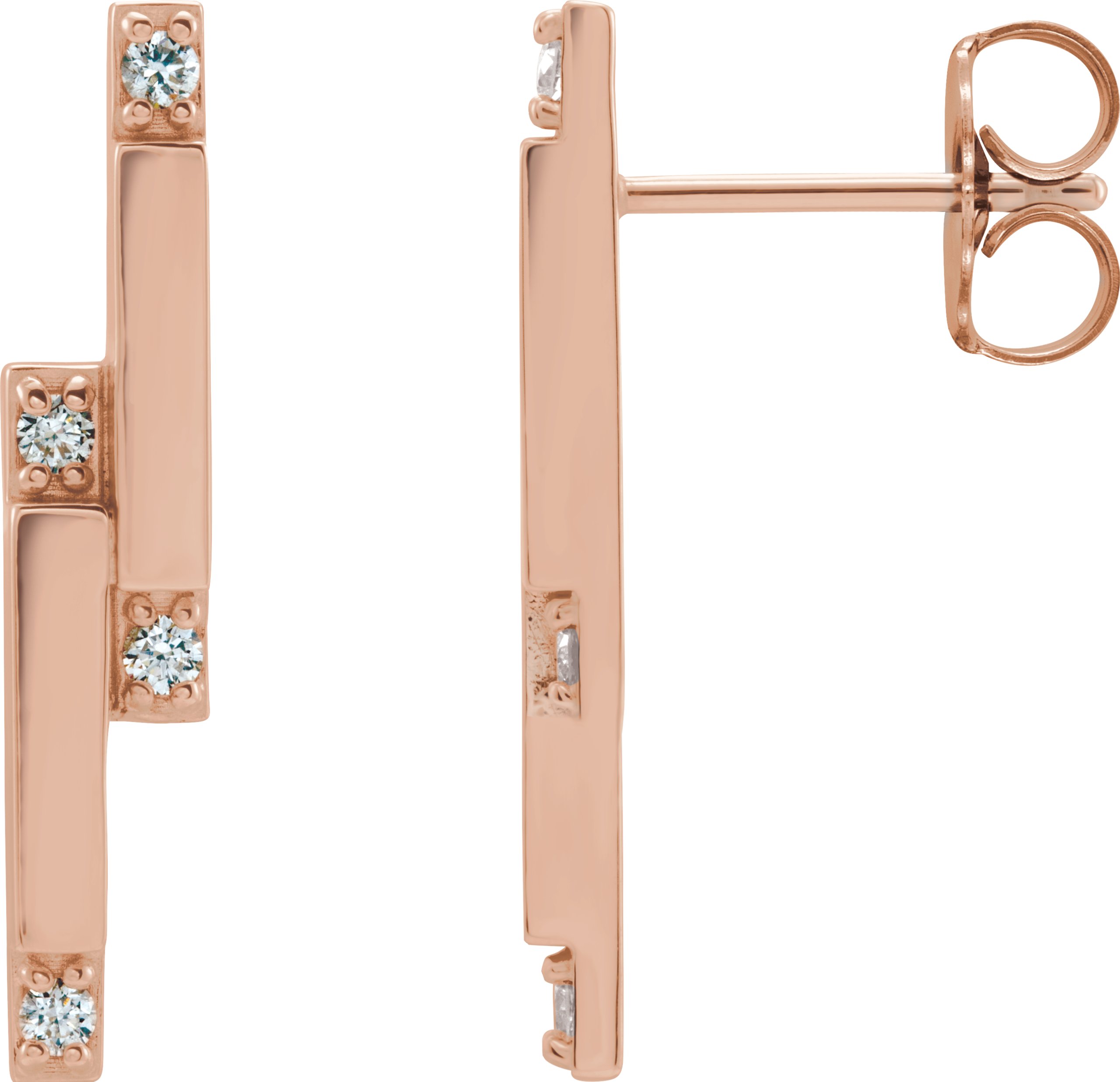 87051 / Set / Natural Diamond / Pair / 21 Mm :: 1/10 Ctw / 14K Rose / I1, G-H / Friction Backs Included / Polished / 1/10 Ctw Natural Diamond Geometric Drop Earrings