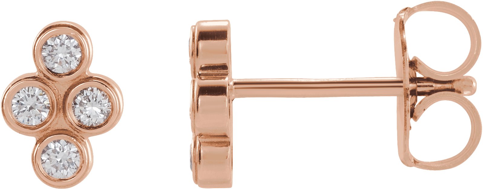 87353 / Earring / Set / Natural Diamond / Round / 1.5 Mm / 14K Rose / Pair / Friction Backs Included / Polished / 1/10 Ctw Natural Diamond Bezel-Set Cluster Earrings