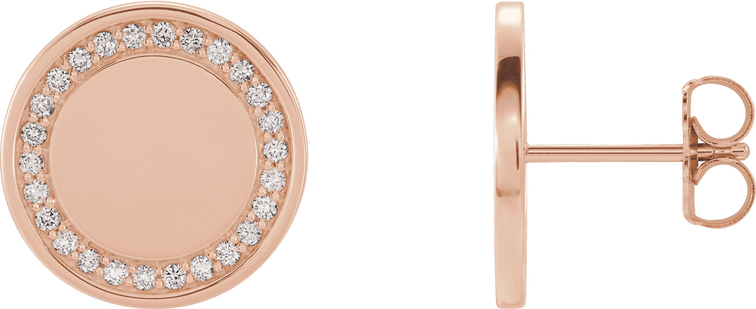 14K Rose 1/4 CTW Diamond Engravable Earrings