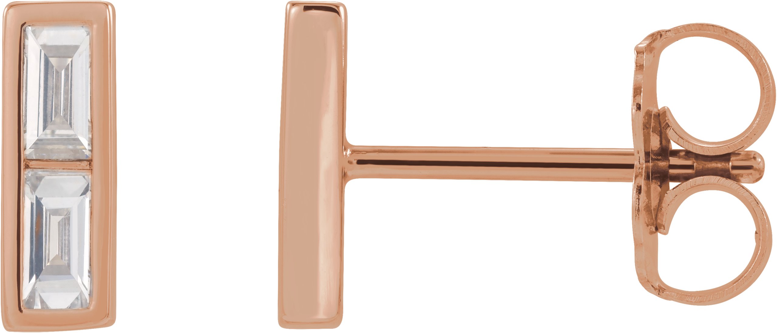 86756 / Earring / Set / Natural Diamond / Straight Baguette / 3.25 X 1.75 Mm / 14K Rose / Pair / Friction Backs Included / Polished / 1/4 Ctw Natural Diamond Bar Earrings With Backs