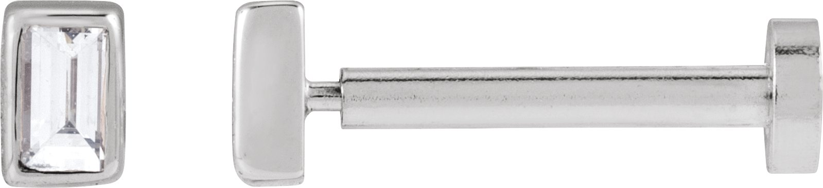88232 / Earring / Set / Lab-Grown Diamond / Straight Baguette / 2.5 X 1.5 Mm / 14K White / Each / Press Fit Back Included / 6 Mm / Polished / .03 Ct Lab-Grown Diamond Bezel-Set Earring With Press Fit Back