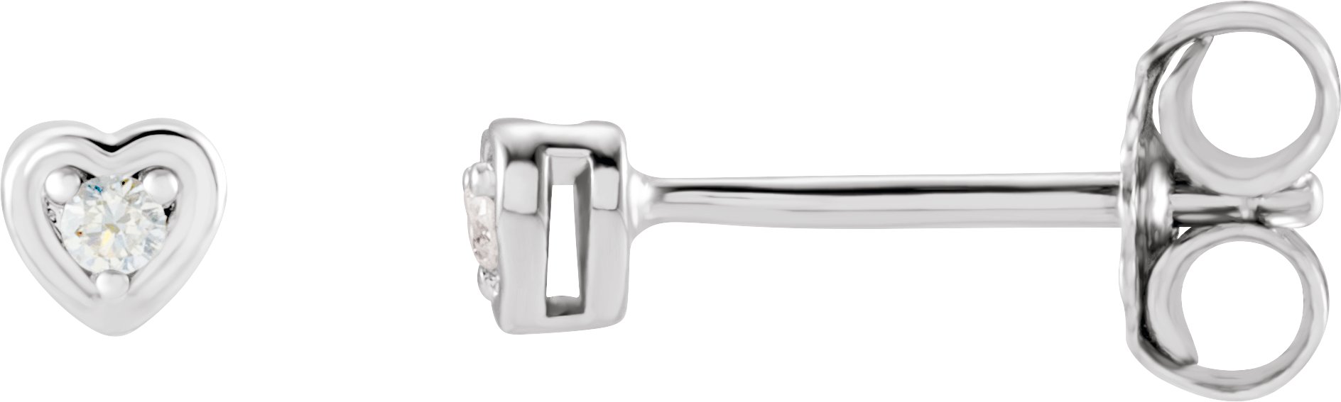 653582 / 14K White / Set / Round / Natural Diamond / Pair / 1.5Mm :: 0.03 Ctw / I1, H+ / Friction / Friction Backs Included / 3-Prong / Polished / .03 Ctw Natural Diamond Youth Heart Earrings