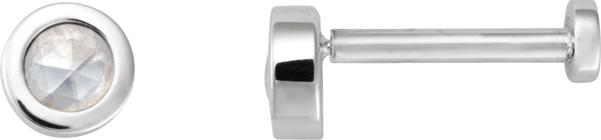 14K White .06 CT Rose-Cut Natural Diamond Press Fit Back Stud Earring