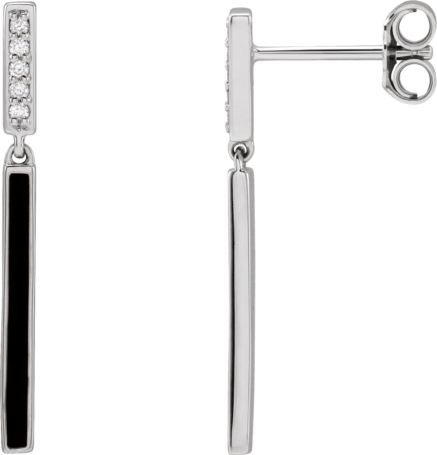 688832 / Earring / Set / 14K White / Black Enamel / 25.26 Mm / Natural Diamond / Round / 1.1Mm :: 0.06 Ctw / Pair / Friction Backs Included / Polished / .06 Ctw Natural Diamond Black Enamel Bar Drop Earrings