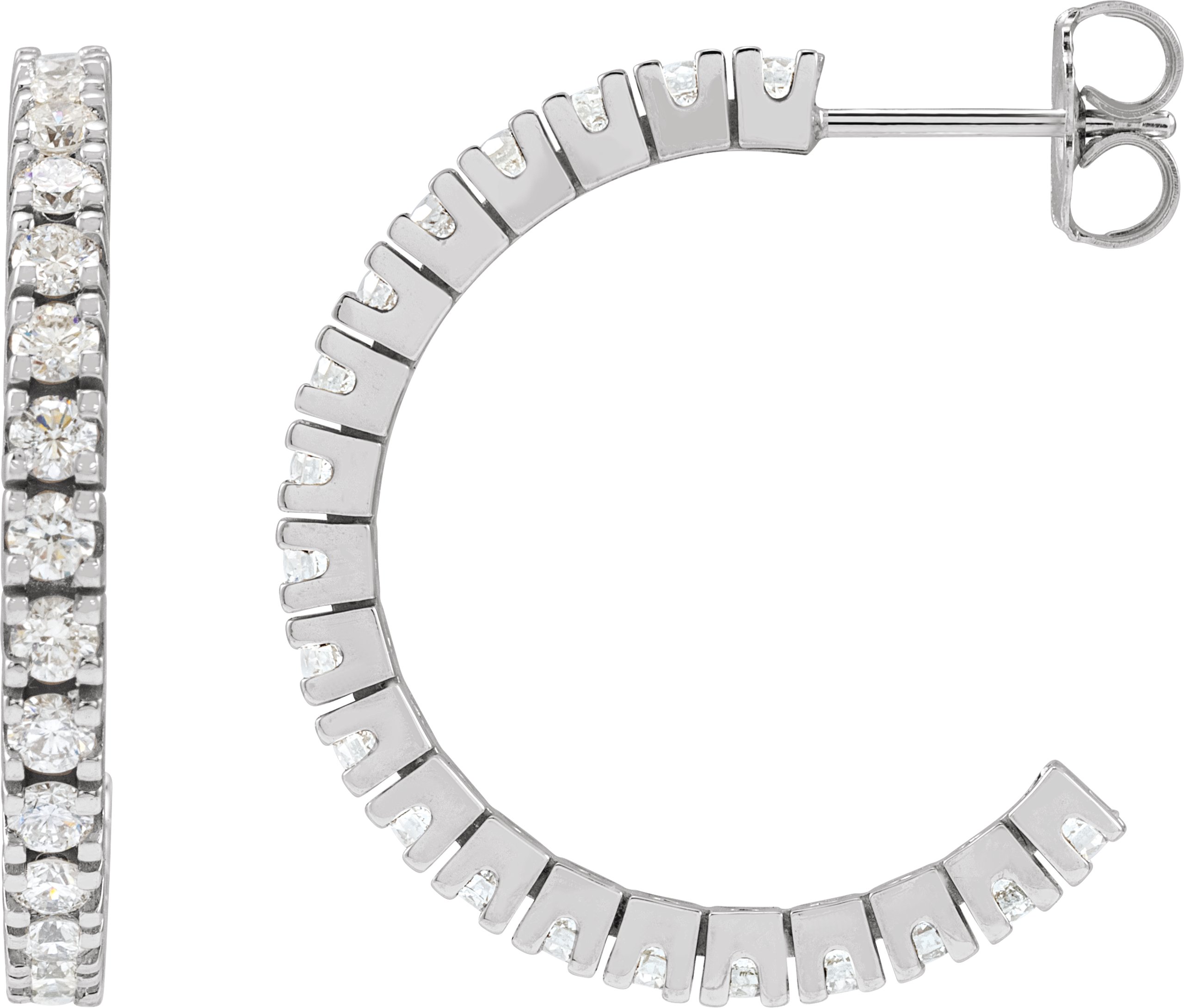 797 / Earring / Set / 14K White / 24.7 Mm / 2.2 Mm / Lab-Grown Diamond / Round / 2.2Mm :: 1 3/4 Ctw / Si1-Si2, Gh / Pair / Friction Backs Included / Polished / 1 5/8 Ctw Lab-Grown Diamond Hoop Earrings