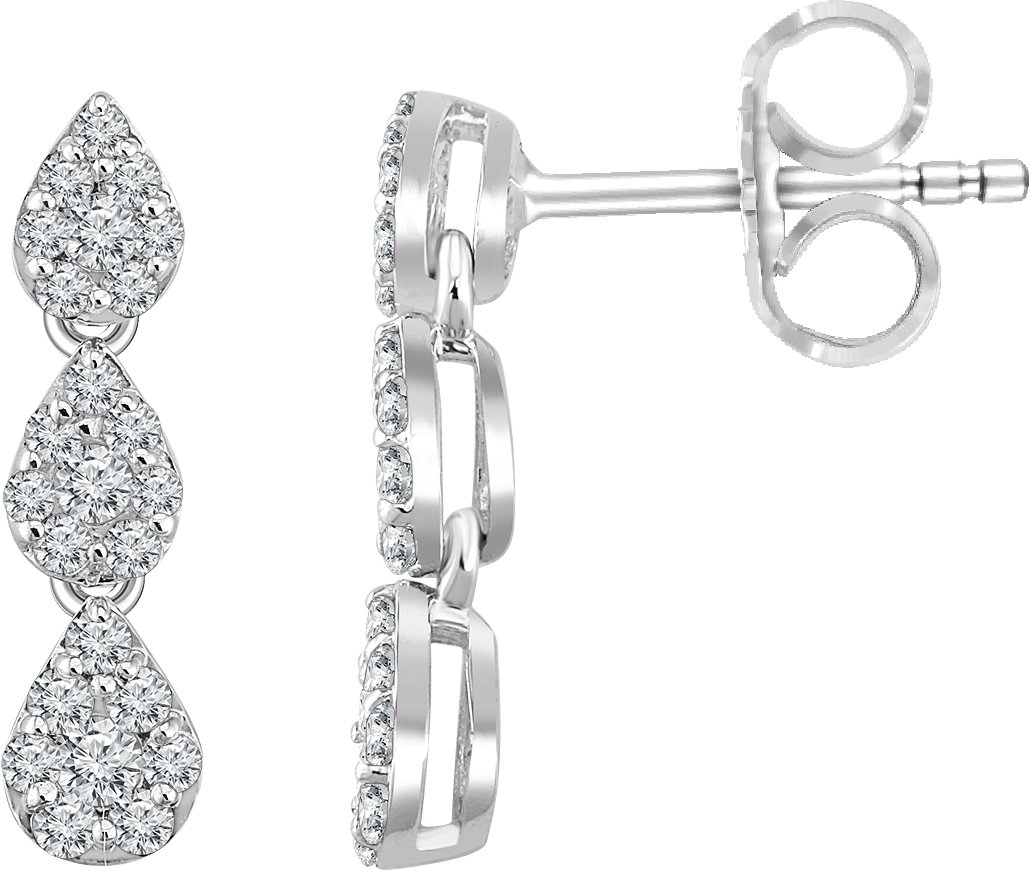 652674 / Set / 14K White / Pair / Polished / 1/2 Ctw Diamond Cluster Dangle Earrings With Backs