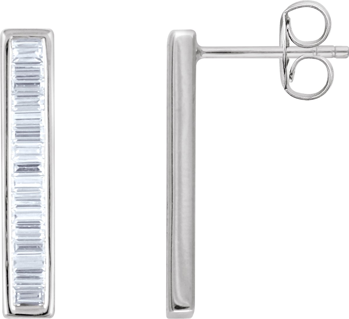 651886 / Set / 14K White / 14-Stone / Natural Diamond / 2.2 Mm / I1, H+ :: 1/2 Ctw / Pair / Polished / 1/2 Ctw Natural Diamond Bar Earrings With Backs