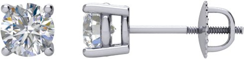 67542 / 14K White / Set / Round / Natural Diamond / Pair / 3.9Mm :: 1/2 Ctw / Si1, G-H / Threaded Post / Threaded Backs Included / 4-Prong / Polished / Natural Diamond Earrings