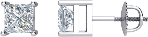 62867 / 14K White / Set / Pair / Diamond / Square / 3 X 3Mm :: 1/3 Ctw / Threaded Post / Threaded Backs Included / Polished / Square Diamond Stud Earrings