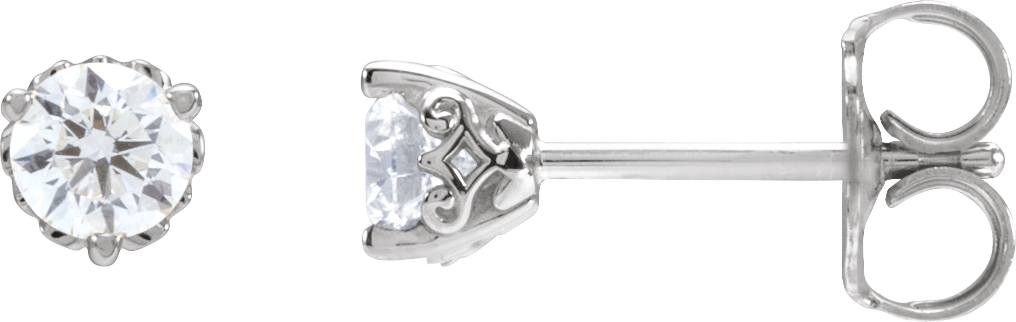 88183 / 14K White / Set / Round / Lab-Grown Diamond / Pair / 3.5Mm :: 1/3 Ctw / Si1-Si2, Gh / Friction / Friction Backs Included / 3-Prong / Polished / 1/3 Ctw Lab-Grown Diamond 3-Prong Vintage-Inspired Earrings