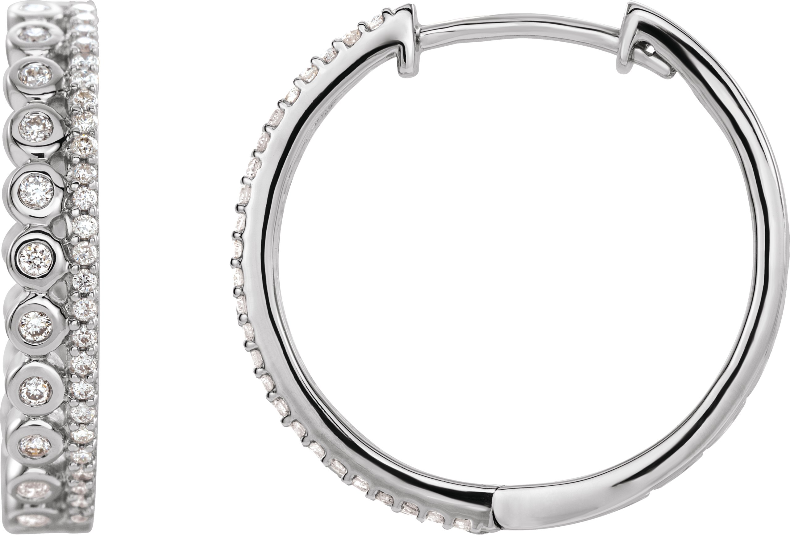 653409 / Earring / Set / 14K White / 19.1 Mm / 3.6 Mm / Natural Diamond / Round / I1, H+ / Pair / Hinged / Polished / 1/3 Ctw Natural Diamond Geometric Hinged Hoop Earrings