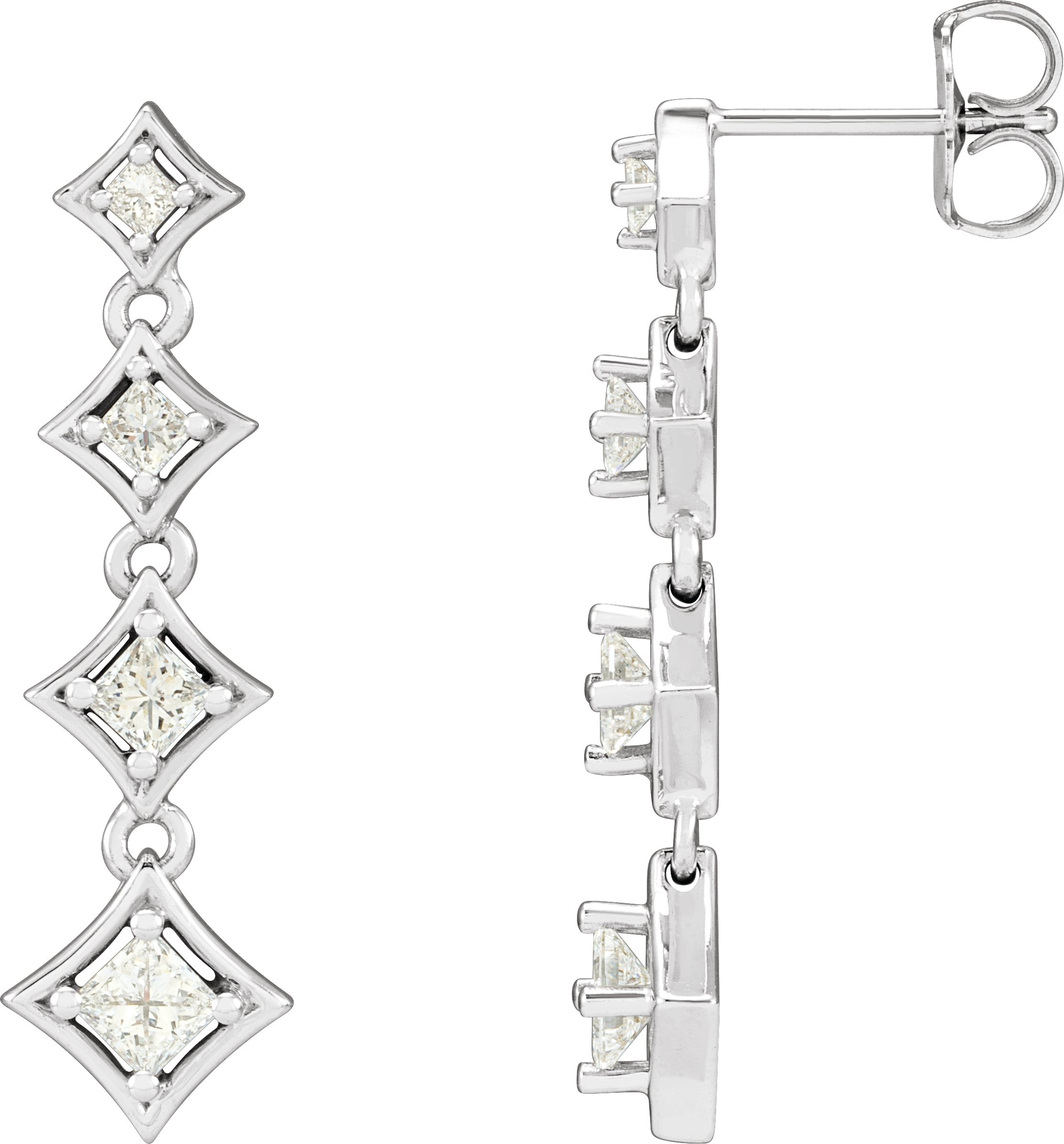 65465 / Earring / Set / Natural Diamond / Square / 3 X 3 Mm / 14K White / Each / Friction Back Included / Polished / 1/3 Ctw Natural Diamond Journey Earring