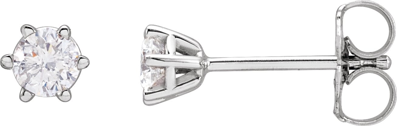 29236 / 14K White / Set / Round / Natural Diamond / Pair / 3.4Mm :: 1/3 Ctw / I2, G-H / Friction / Friction Backs Included / 6-Prong / Polished / 1/3 Ctw Natural Diamond 6-Prong Wire Basket Earrings