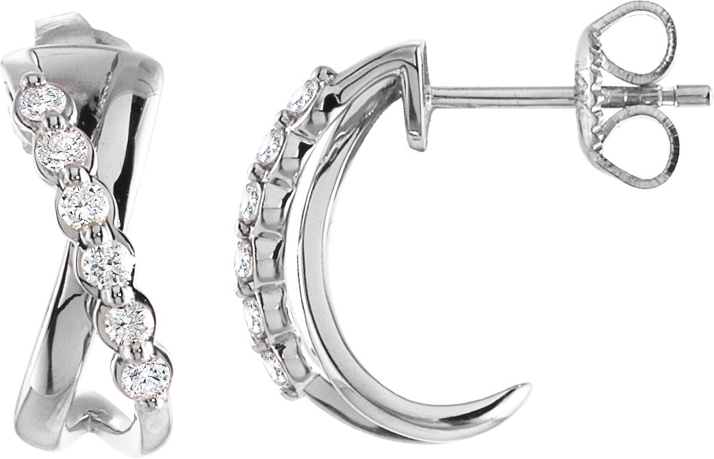 14K White 1/4 CTW Diamond Criss-Cross J-Hoop Earrings