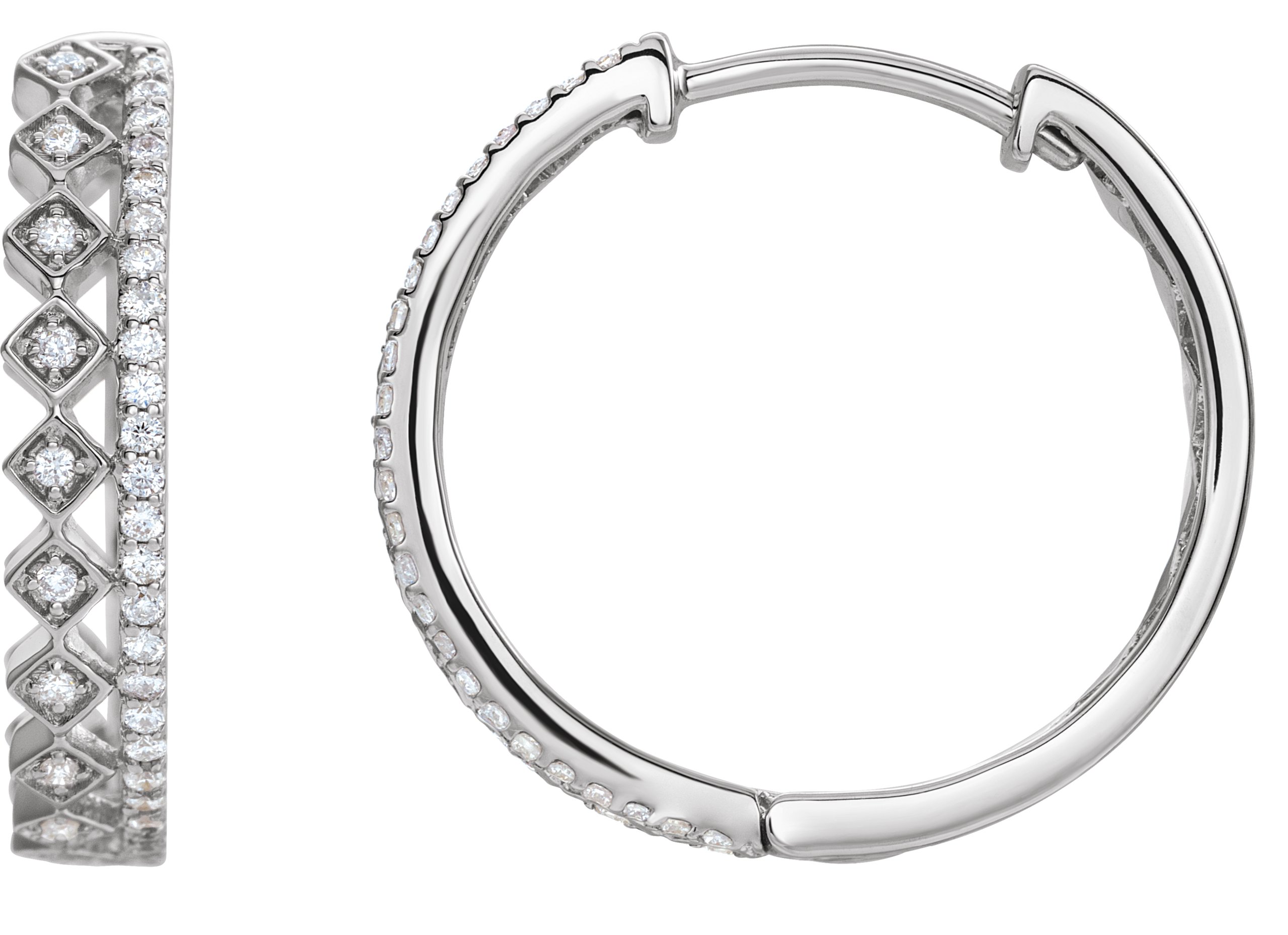 653411 / Earring / Set / 14K White / 18.75 Mm / 3.7 Mm / Natural Diamond / Round / .9Mm :: 1/4 Ctw / Pair / Hinged / Polished / 1/4 Ctw Natural Diamond Geometric Hinged Hoop Earrings