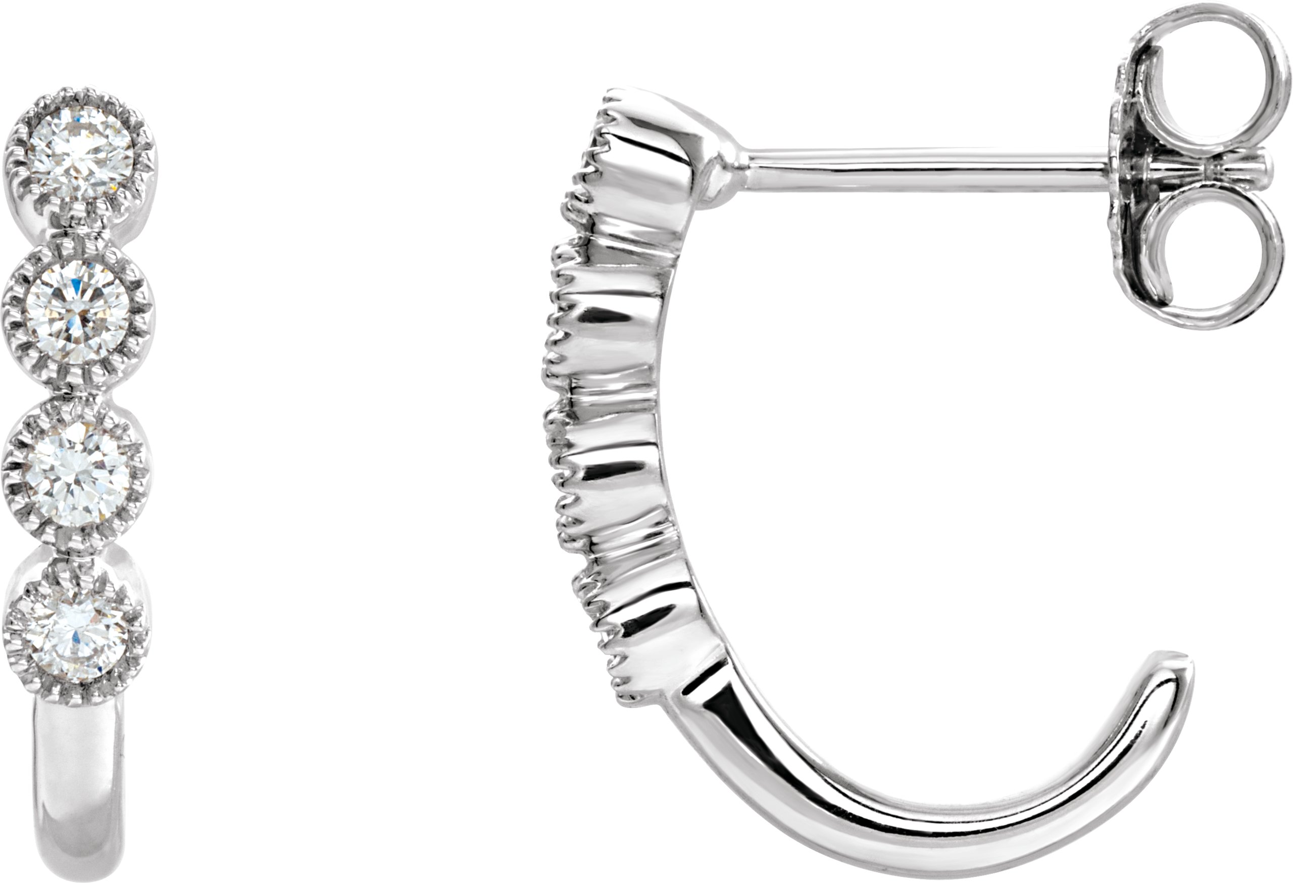 653413 / Earring / Set / Natural Diamond / Round / 2 Mm / 14K White / Pair / Friction Backs Included / Polished / 1/4 Ctw Natural Diamond J-Hoop Earrings