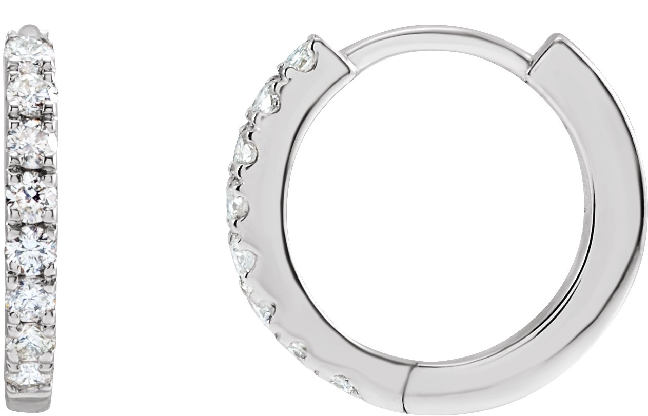 653726 / Earring / Set / 14K White / 12 Mm / 1.65 Mm / Lab-Grown Diamond / Round / 1.4Mm :: 1/5 Ctw / Si1-Si2, Gh / Pair / Hinged / Polished / 1/5 Ctw Lab-Grown Diamond Hoop Earrings