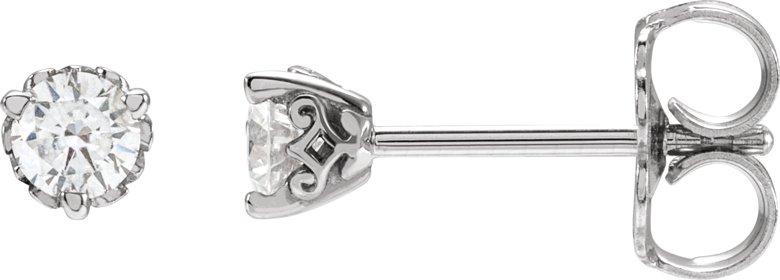 88183 / 14K White / Set / Round / Lab-Grown Diamond / Pair / 3Mm :: 1/5 Ctw / Si1-Si2, Gh / Friction / Friction Backs Included / 3-Prong / Polished / 1/5 Ctw Lab-Grown Diamond 3-Prong Vintage-Inspired Earrings