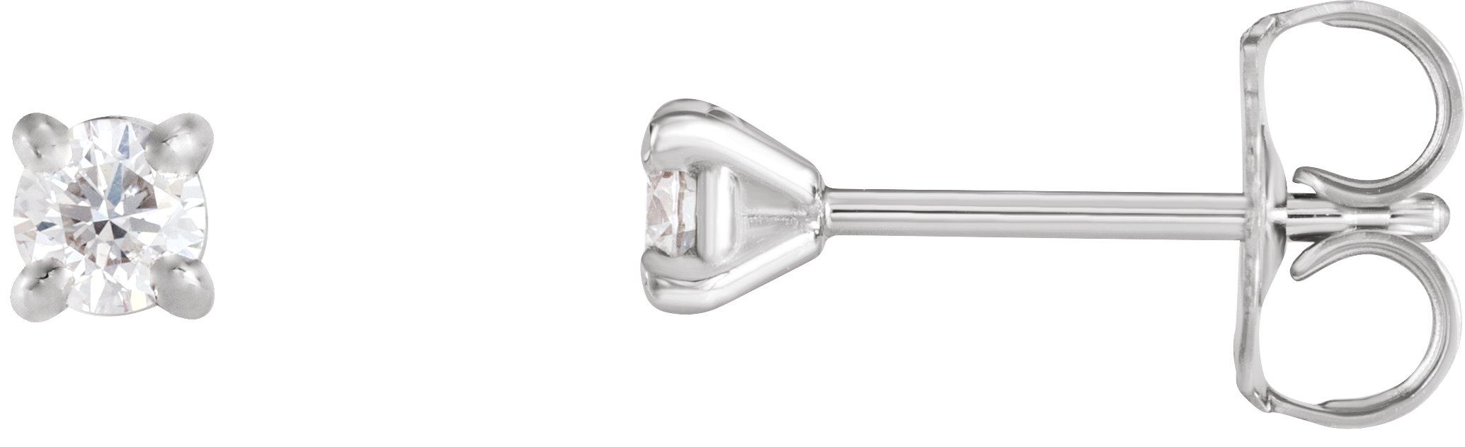 88027 / 14K White / Set / Round / Natural Diamond / Pair / 3Mm :: 1/5 Ctw / I1, G-H / Friction / Friction Backs Included / 4-Prong / Polished / 1/5 Ctw Natural Diamond Claw-Prong Cocktail Earrings