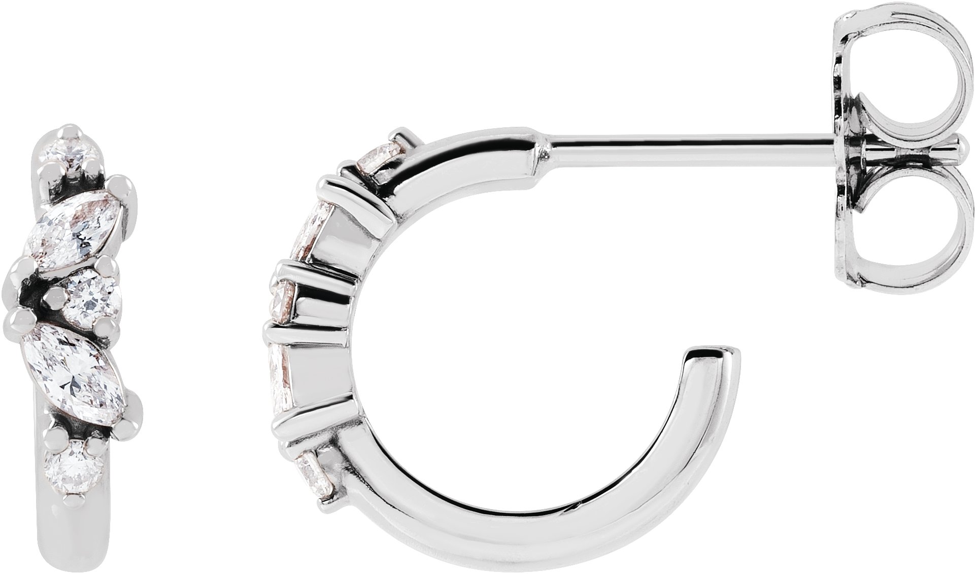 87202 / Earring / Set / Natural Diamond / 14K White / Natural Diamond / Pair / Friction Backs Included / Polished / 1/5 Ctw Natural Diamond Hoop Earrings