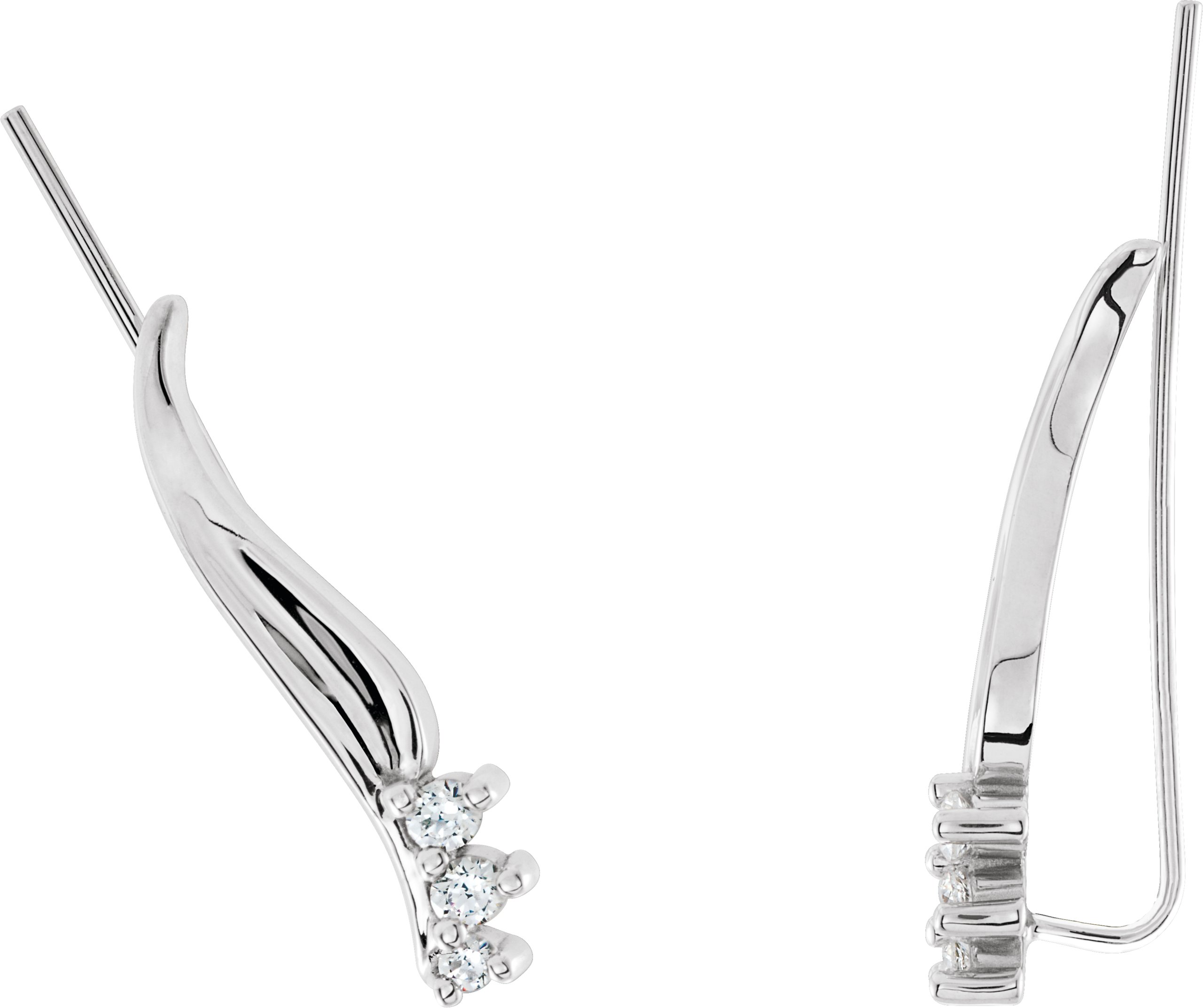 81221 / Earring / Set / Natural Diamond / Round / 14K White / Pair / Backless / Polished / 1/6 Ctw Natural Diamond Ear Climbers
