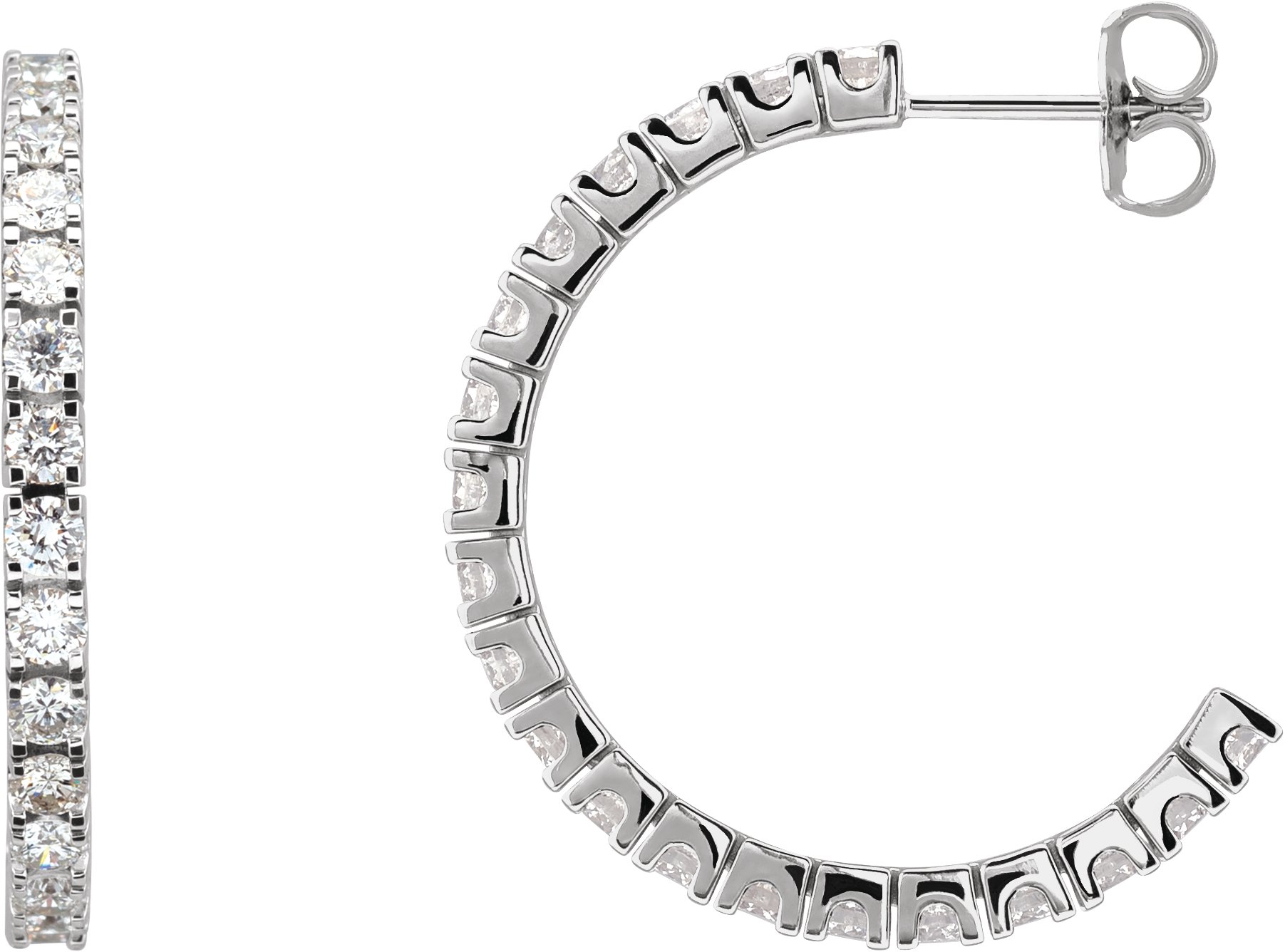 797 / Earring / Set / 14K White / 27.7 Mm / 2.5 Mm / Lab-Grown Diamond / Round / 2.4Mm :: 2 1/5 Ctw / Si1-Si2, Gh / Pair / Friction Backs Included / Polished / 2 1/5 Ctw Lab-Grown Diamond Hoop Earrings