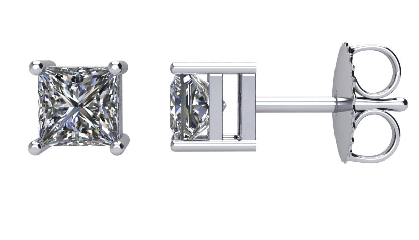 62866 / 14K White / Set / Square / Natural Diamond / Pair / 4 X 4Mm :: 3/4 Ctw / I1, G-H / Friction / Friction Backs Included / 4-Prong / Polished / Square Natural Diamond Earring