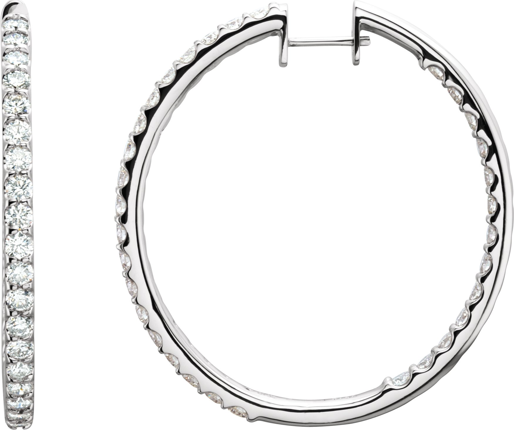 61378 / Earring / Set / 14K White / 44 Mm / 2.7 Mm / Natural Diamond / Round / I1, Ghi / Pair / Hinged / Polished / 5 Ctw Natural Diamond Inside-Outside Hinged Hoop Earrings