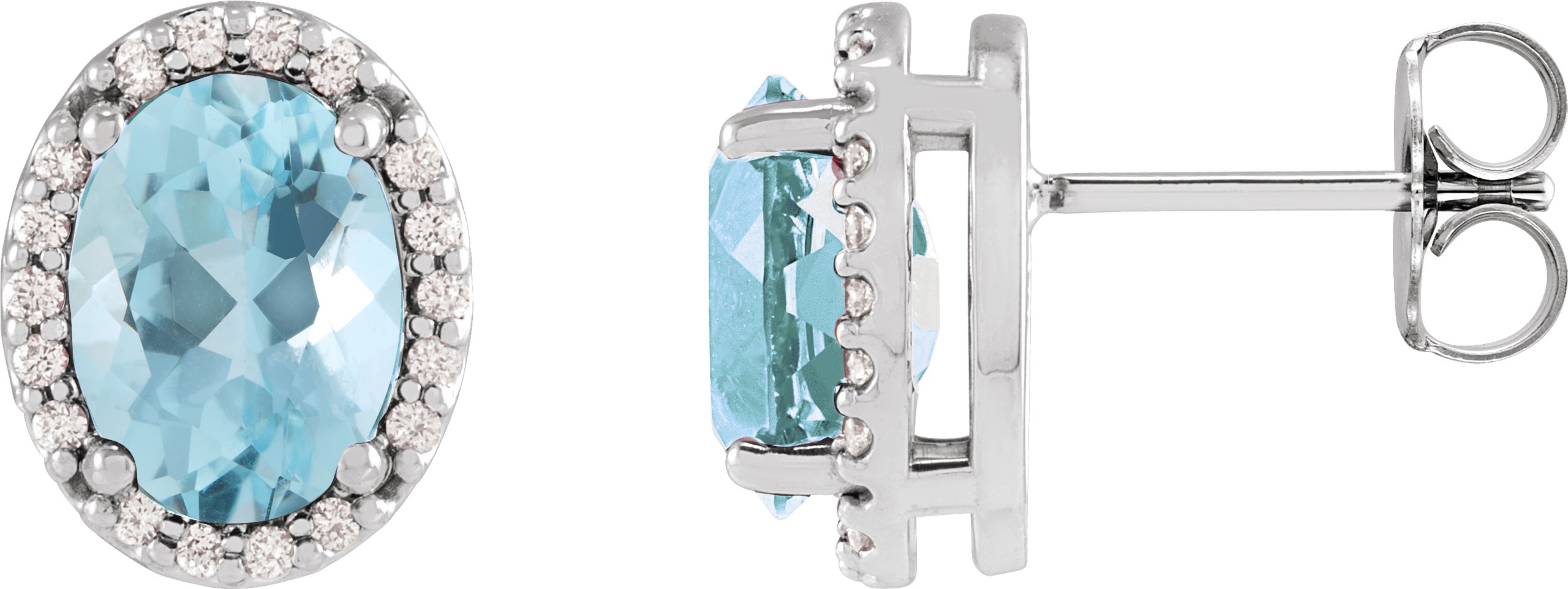 88134 / Earring / Set / Natural Aquamarine / Oval / 6 X 4 Mm / 14K White / Natural Diamond / Pair / Friction Backs Included / Polished / Natural Aquamarine And .06 Ctw Natural Diamond Halo-Style Basket Earrings