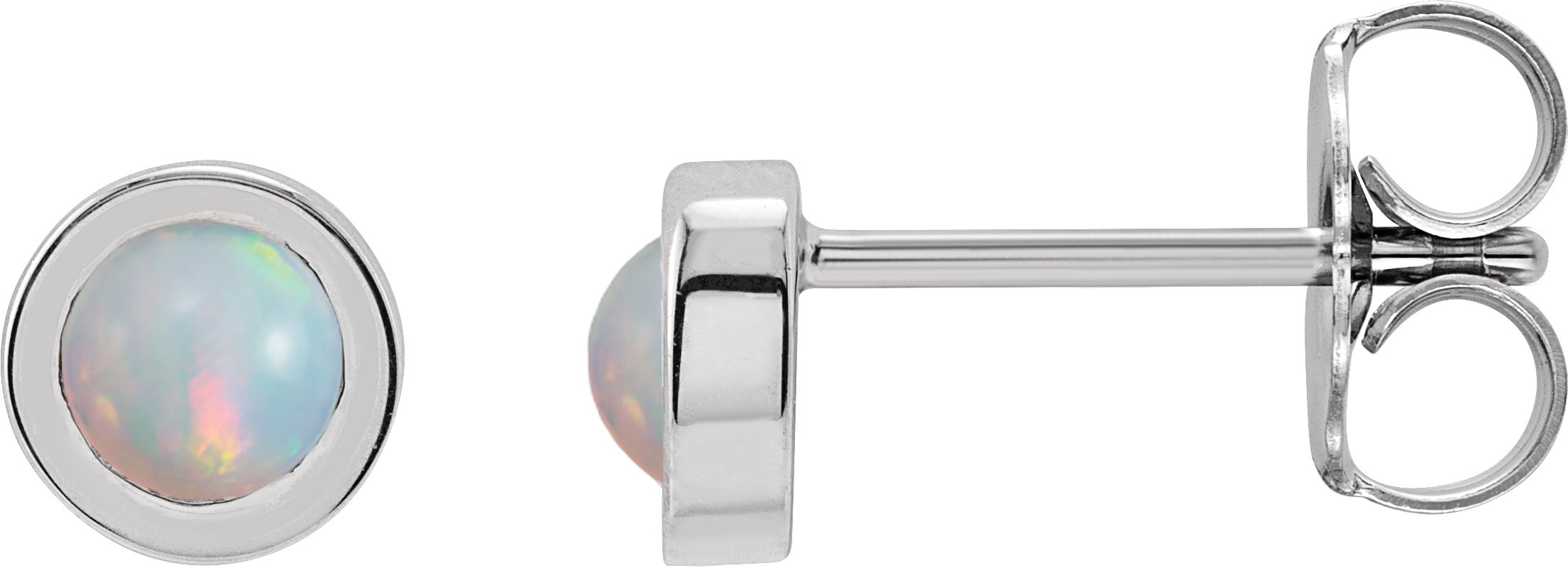 87612 / 14K White / Set / Round / Natural White Opal / Pair / 4 Mm / Friction / Friction Backs Included / Bezel / Polished / Cabochon Natural White Opal Bezel-Set Solitaire Earrings