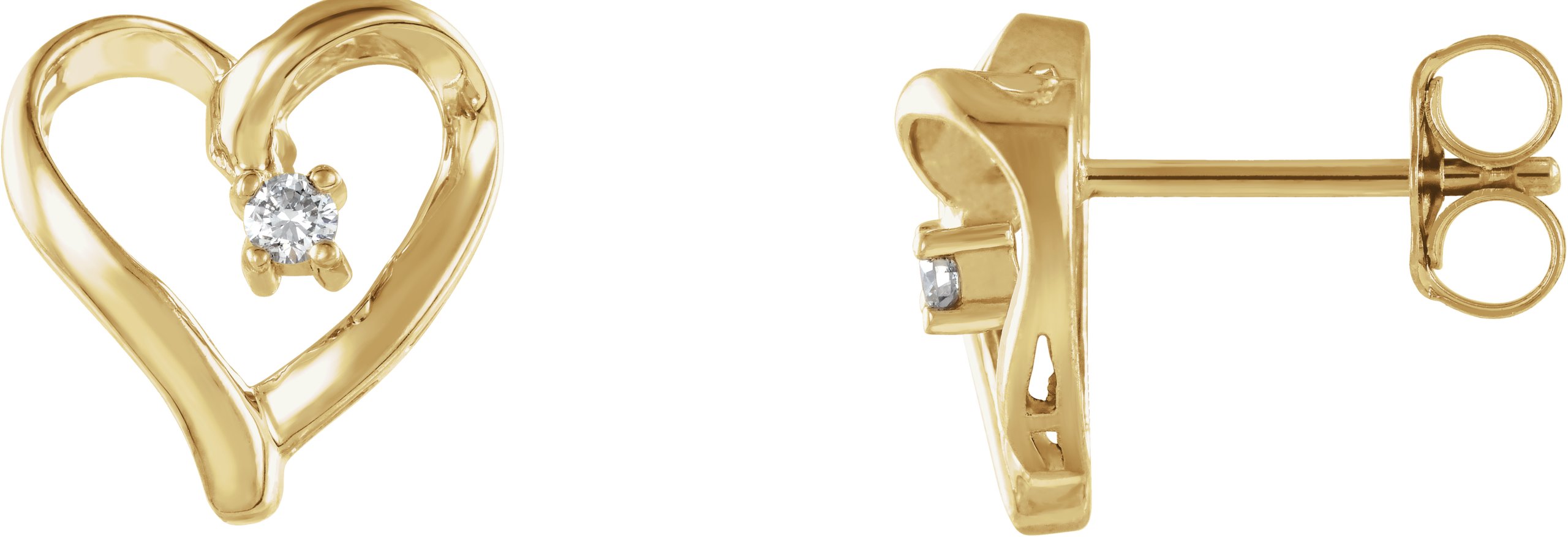 60856 / 14K Yellow / Set / Round / Natural Diamond / Pair / 0.03 Ctw / I1, G-H / Friction / Friction Backs Included / 4-Prong / Polished / Natural Diamond Heart Earrings