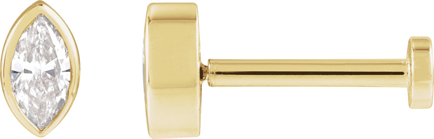 88234 / Earring / Set / Natural Diamond / Marquise / 4 X 2 Mm / 14K Yellow / Each / Press Fit Back Included / 6 Mm / Polished / .07 Ct Natural Diamond Bezel-Set Earring With Press Fit Back