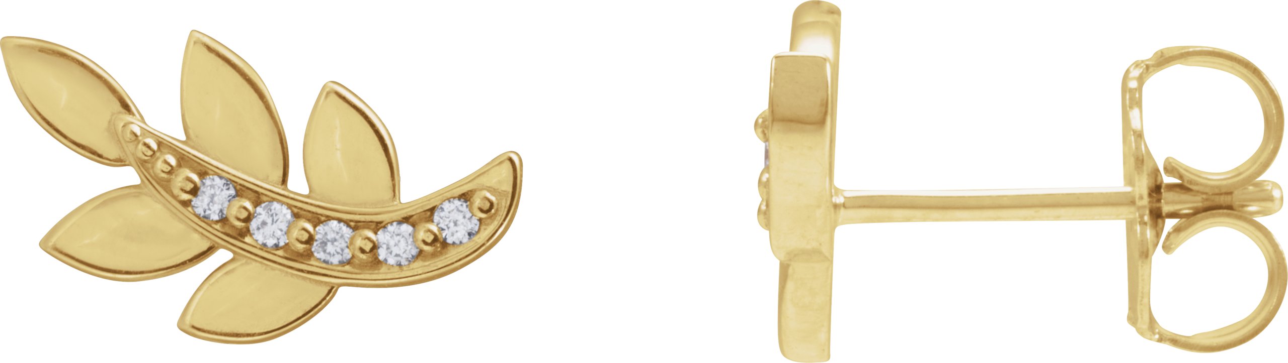 88684 / Earring / Set / Natural Diamond / Round / 1.2 Mm / 14K Yellow / Pair / Friction Backs Included / Polished / .07 Ctw Natural Diamond Leaf Earrings