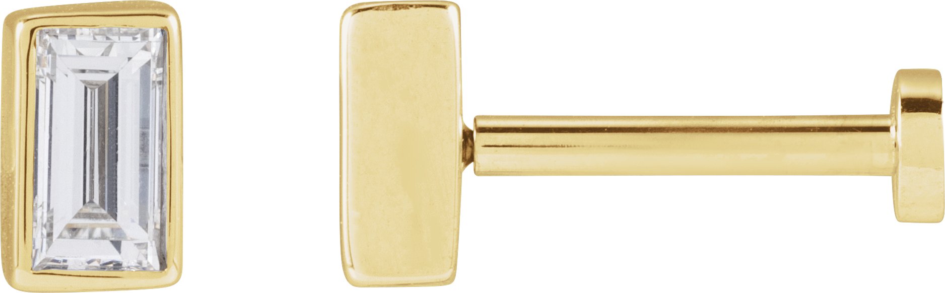 88232 / Earring / Set / Lab-Grown Diamond / Straight Baguette / 4 X 2 Mm / 14K Yellow / Each / Press Fit Back Included / 6 Mm / Polished / 1/10 Ct Lab-Grown Diamond Bezel-Set Earring With Press Fit Back