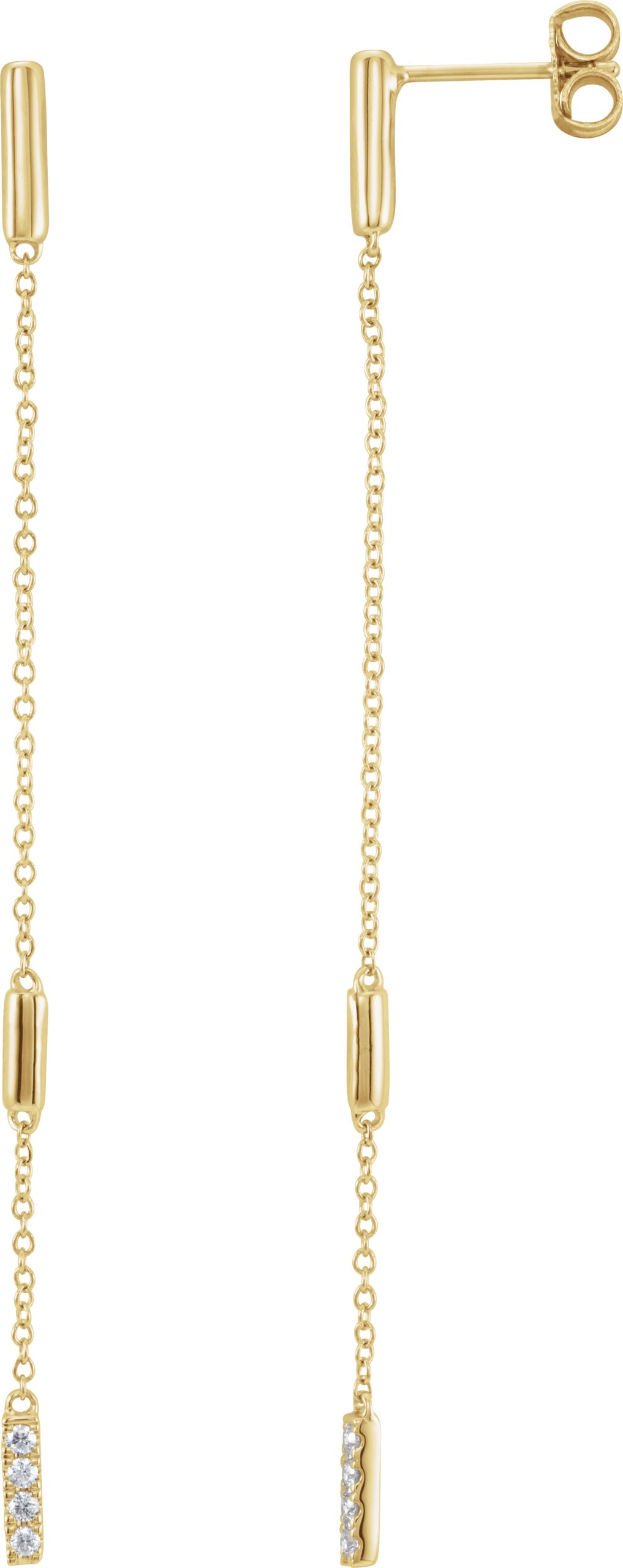 652337 / Earring / Set / Natural Diamond / Round / 1.4 Mm / 14K Yellow / Pair / Friction Backs Included / Polished / 1/10 Ctw Natural Diamond Chain Earrings