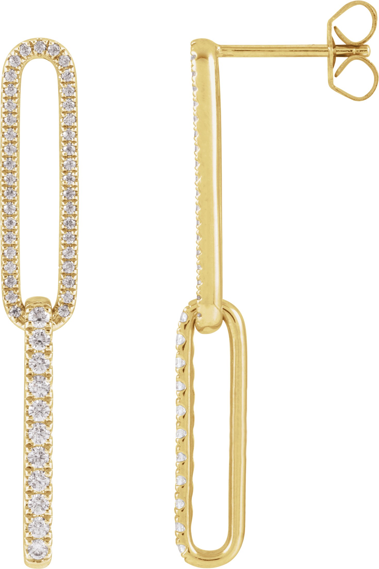 689047 / Earring / Set / Lab-Grown Diamond / Round / 1.4 Mm / 14K Yellow / Pair / Friction Backs Included / Polished / 1/2 Ctw Lab-Grown Diamond Elongated Link Earrings