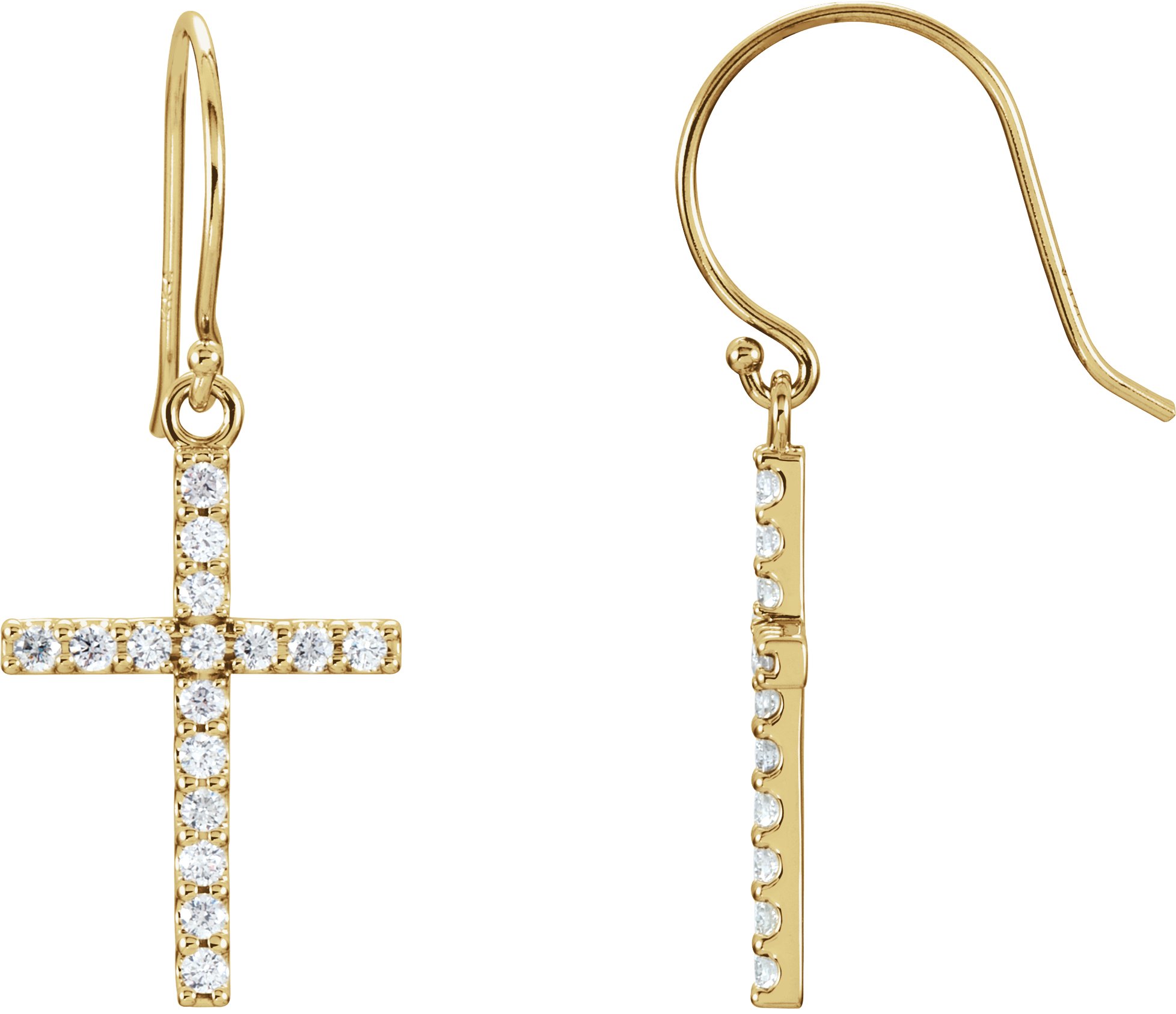 R17010 / Earring / Set / Natural Diamond / Round / 1.5 Mm / 14K Yellow / Pair / Backless / Polished / 1/2 Ctw Natural Diamond Cross Earrings