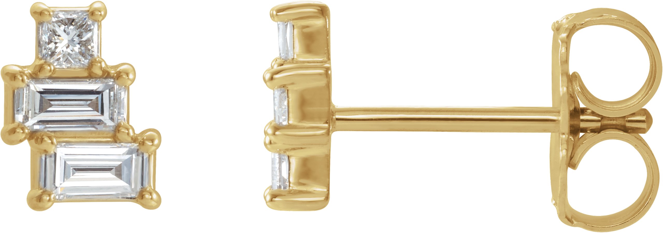 86895 / Earring / Set / Natural Diamond / Straight Baguette / 14K Yellow / Natural Diamond / Pair / Friction Backs Included / Polished / 1/4 Ctw Natural Diamond Geometric Cluster Earrings