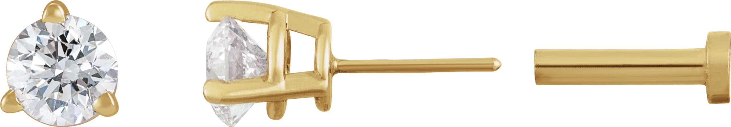 88036 / Earring / Set / Natural Diamond / Round / 4 Mm / 14K Yellow / Each / Press Fit Back Included / 6 Mm / Polished / 1/5 Ct Natural Diamond 3-Prong Wire Basket Earring With Press Fit Back