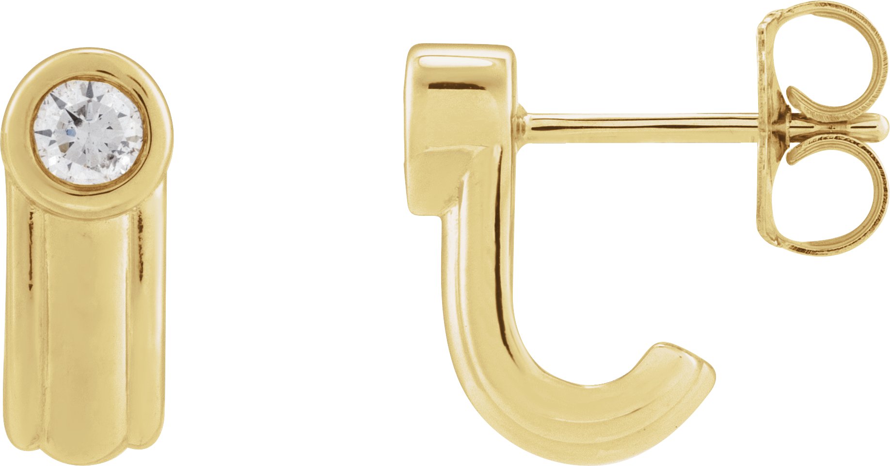 88776 / Earring / Set / 14K Yellow / 10.4 X 4.2 Mm / 4.2 Mm / Lab-Grown Diamond / Round / 3Mm :: 1/5 Ctw / Pair / Friction Backs Included / Polished / 1/5 Ctw Lab-Grown Diamond Solitaire J Hoop Earrings